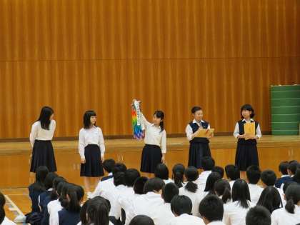 担当した女子の評議員がそれぞれが協力してくれた全員に感謝の言葉を述べ、平和への思いをセレモニーで伝えることを発表しました。