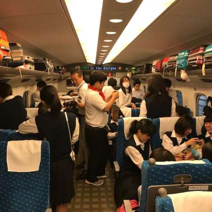 車内では、楽しい雰囲気で旅行は進んでいます。