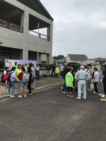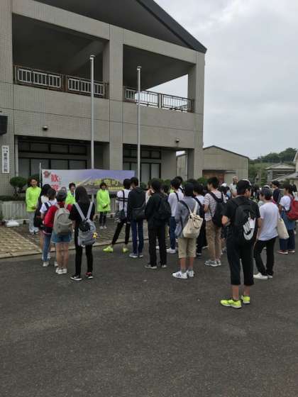 離村式の様子です。お世話になった民泊の方と別れを惜しんでいます。