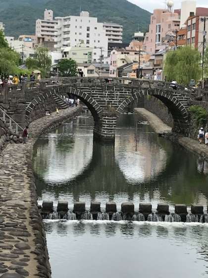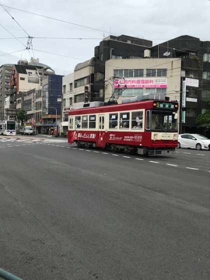 眼鏡橋に来ました。移動には、市電を使います。市民や観光客の足である市電は、どこまで乗っても1回、120円。