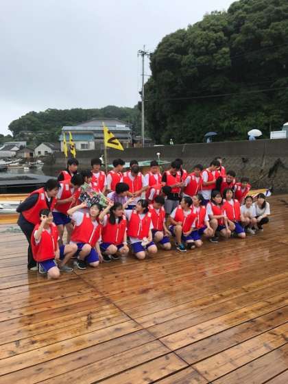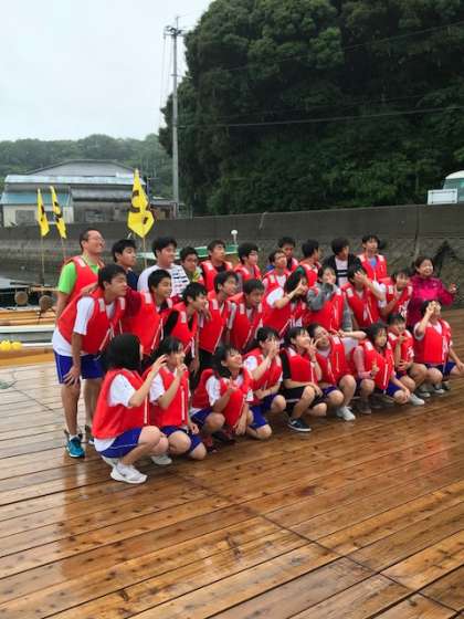 ペーロン大会終了。2組の3連勝で幕を閉じました。お世話になった牧島の方々にお礼を言ってからクラス写真を撮りました。