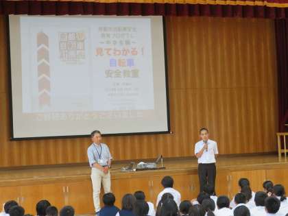 本日6限、1年生は「見てわかる自転車安全教室」を行いました。