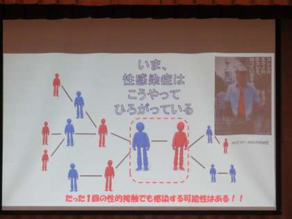 各自が持っている水を3人と混ぜあい交換後、判定の液を入れて水に色がつけば感染しているという実験です。誰が感染源かわからない状態なので、最終的にはほとんどの方が感染する状況がありました。