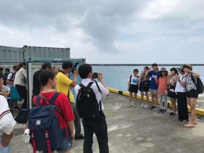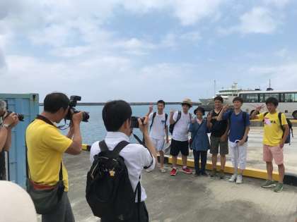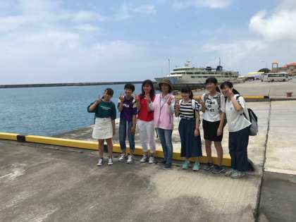 民泊体験を終えて伊江港に戻ってきました。生徒は、笑顔いっぱいです。中にはお別れを惜しむ生徒もいました。民家のみなさん、ありがとうこざいました。