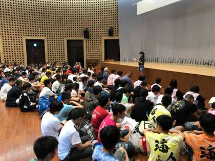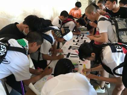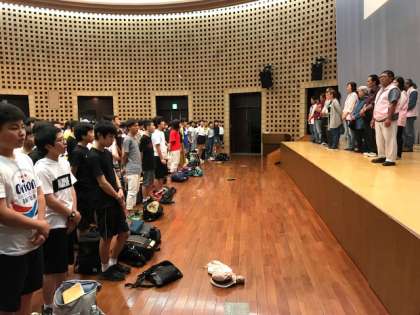 生徒代表があいさつして、全員で感謝の気持ちを込めて「ふるさと」を合唱しました。民家の方に教えてもらった伊江島の伝統的な踊りを披露するグループもありました。