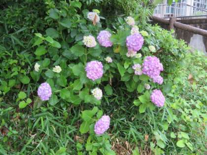 そのようなあいにくの天候ですが,バレーコート横には今年も色鮮やかなアジサイが咲来ました。