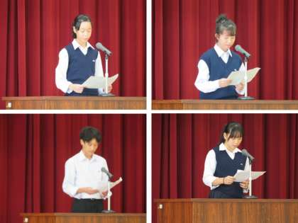 今回のテーマは「学校祭を通して学んだこと」で,1年生2名,2年生2名,3年生4名の計8名が発表してくれました。