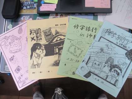 新型コロナの終息状況にもよりますが、修学旅行が9月の沖縄に。3年の4月にみんなに返却した沖縄調べ学習の4クラスの冊子。