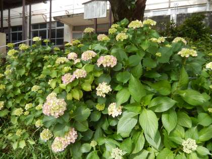 1枚目は5月28日、学習相談日の紫陽花。開いているものもありましたが、まだ青い。