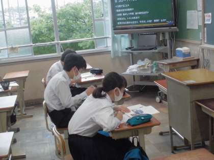 雨の中、37人が登校し学習しました。2年生のちょうど4人に1人になります。自分が選んだ課題について、2時間集中して学びました。受け身ではなく、自分から主体的能動的に学習する姿勢は、本当に大切です。試験まであと5日!!