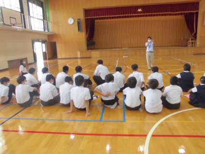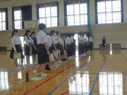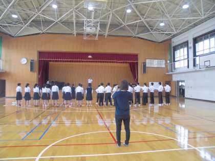 体育館では並び方、合唱コンクール時の作法について確認しました。教室での練習とは異なり、大きな空間のある体育館では、なかなか声が響きません。声量をあげて、歌詞に感情を込めて歌えるようになりましょう。素晴らしい2年生の合唱4部作が出来上がるのを楽しみにしています。