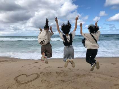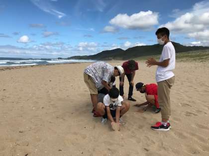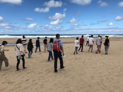 こまねこ班、貝殻細工班は合流して、琴引浜に行きました。