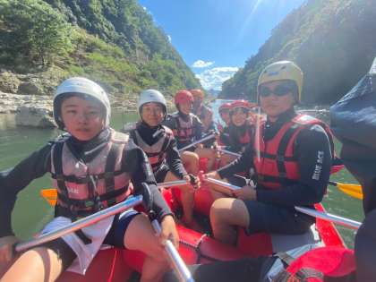 ラフティングに生徒と一緒に乗っておられる先生からのLive配信が届きました!やはり、迫力が違いますね
