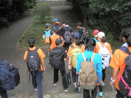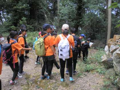だいぶ涼しくなり、登山シーズンとなりました。ワンゲル部では1年生対象のオリエンテーリング形式の登山を行ないました。本年度はコロナで中止となった踏査競技会の練習です。部員たちは、蜘蛛の巣や蚊の襲撃にも負けず、頑張ってポイントをさがしながら東山を歩きました。