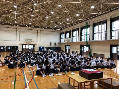 体育の部の疲れを少し残しつつ、5.6限合唱の部リハーサルを行いました。全員マウスシールドをつけての本番となります。初めてつけるマウスシールドに少し違和感を感じながらも飛沫感染防止対策です。