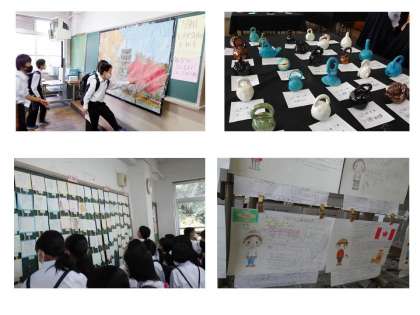 各教科や部活動の展示鑑賞もありました。夏休みの宿題、授業や部活動で製作した力作がたくさん。一つずつに興味を持ち、楽しげに鑑賞するみんなの姿がとても印象的でした。