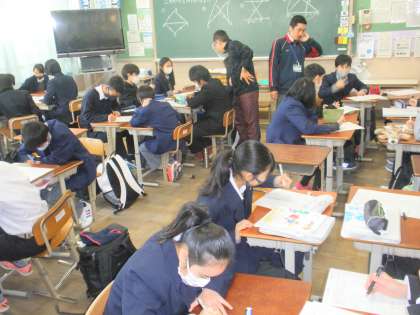 高雄中学校との交流授業です。9月の道徳の授業に続き、今回は教科の授業です。高雄中学校の先生方の授業も含めて朝から3時間の授業で交流を深めました。来年4月からは同じ中学校となる2校。学習面でもお互い高め合える関係性を持ちましょう!