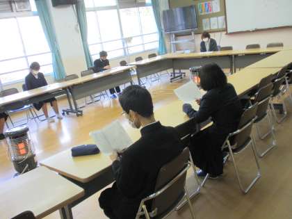 学年末試験は午前中で終了。6時間目には、トークインが放送で行われました。2年生からは、3組と4組の代表者が発表をしてくれました。コロナにより放送での発表です。聴衆の反応がじかに伝わらないのは残念ですが、二人とも緊張しつつもしっかりと自分の意見を離してくれました。中学生にとって人前で話すことは大きな成長につながります。