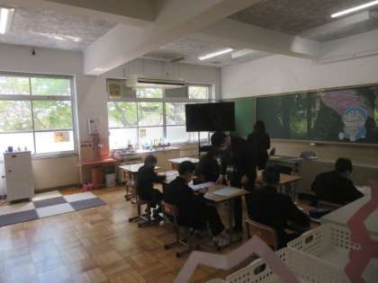 始業式のあと,旧クラスから新クラスへ各自が机と椅子を運びました。その後,新担任による学級開きです。少し緊張気味の生徒や先生,みんなで素敵なクラスを作っていきましょう。