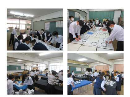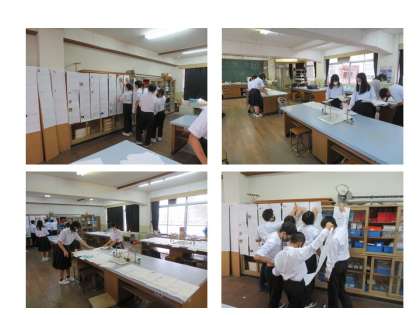 写真は上から,国語 理科 美術の教科展示の準備の様子です。