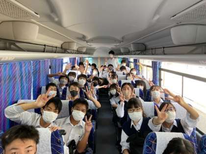 修学旅行 バスにて
