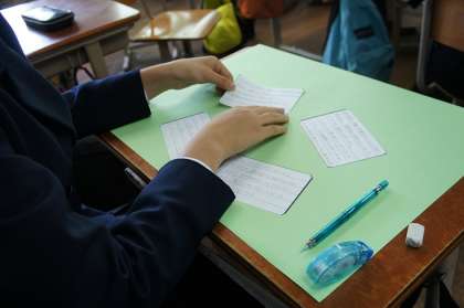 修学旅行から帰ってきて5日が経ち、今日は学活で個人の振り返りのカードを書きました。班別研修と平和学習で学んだこと、気がついたこと等についてまとめました。掲示物は学年の廊下に貼りますので、懇談で来られた際にはぜひご覧下さい。今日の旅のまとめをもって、体育の部・文化の部・修学旅行という3部作が完結しました。