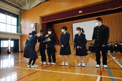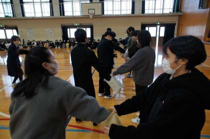 「真面目に遊ぶ!」これを集団として出来る学年は、良い学年だと思います。今日のレクは、10月の修学旅行の時に時間切れで出来なかったゲームの続きです。底冷えのする体育館でしたが、修学旅行レク係の上手な進行で、楽しむことが出来ました!!!