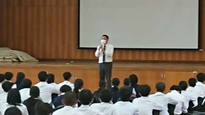 修学旅行委員長の挨拶と学年主任の谷村先生から修学旅行にむけての心構えについてのお話がありました。そして最後に校長先生から激励のお話がありました。