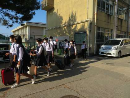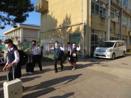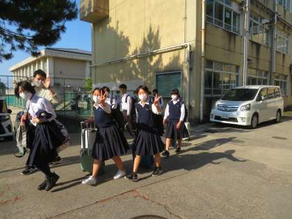 みなさん元気に登校してきました。今日から二泊三日の修学旅行。予定通りに学校を出発しました。