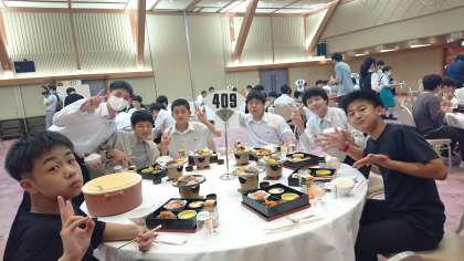 美味しい夕食をいただきました。みんな楽しく美味しく食べています。