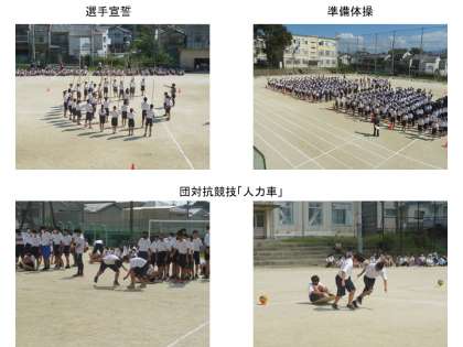 コロナ禍で2年ぶりの全校生徒がそろっての予行となり、今年は各学年が5クラスずつで、1〜3年縦割りの色別団対抗形式で各色の体育委員や団長を中心に、開閉会式や団対抗競技などの確認を行いました。最後は各色団によるエール交換の練習があり、工夫を凝らした応援が見られました。