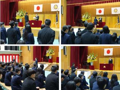 皆さんの中学校生活3年間は、新型コロナウイルスに翻弄(ほんろう)されていました。しかし見方を変えれば、今回の出来事は新しい時代への変革を加速することになっているかもしれません。今回の経験は、皆さんの今後の人生において大きな学びになったと思います。そしてその学びは皆さんの人間としての幅を広げてくれることでしょう。順境にあって侮らず(あなどらず)、逆境にあって焦らず、常に前を向いて一歩一歩着実に歩みを進めてください。皆さんが主役となるこれからの社会は、グローバル化と情報化が急速に進み、変化の激しく予測困難な時代を生き抜くことが求められます。そのような状況で、この先、様々なことにチャレンジしていくことになり、成功よりも、失敗の方が多いかもしれません。