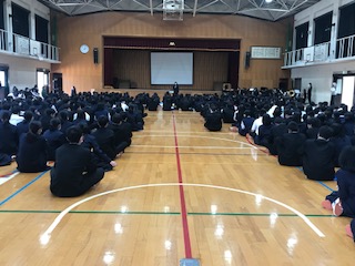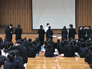 生徒会本部のみなさんが主体で、新入生歓迎会を体育館で行いました。