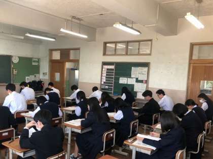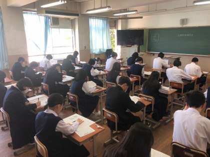 学習確認プログラムを実施しました。中学校での学習内容を計画的に総復習し、その達成状況を定期的にテスト形式で確認することを通して、学習の改善と学力の向上を図るためのものです。みんな真剣に取り組んでいました。