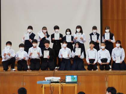 今日は中間テストに先んじて行われた第1回勉強大会の表彰式を行いました!一生懸命勉強した結果が報われて子どもたちはすごく喜んでました!