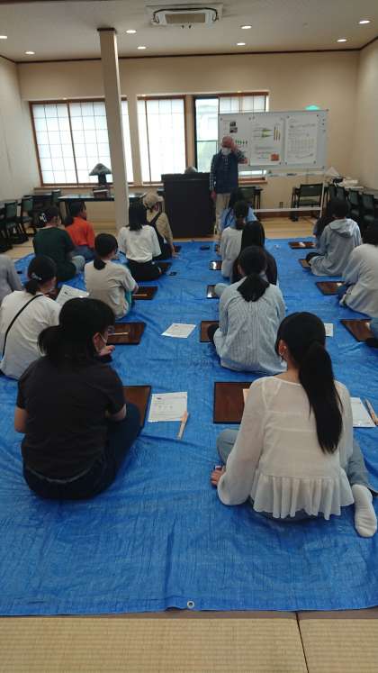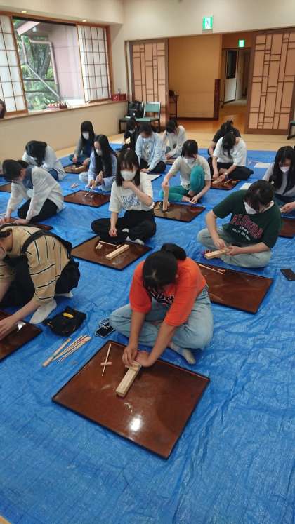 午後の活動、ホテルにて山林学習とお箸づくり