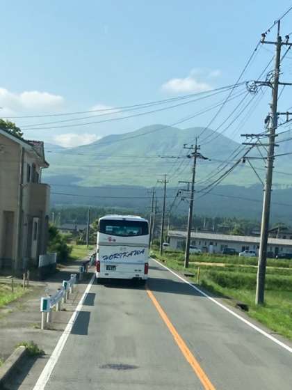 本日快晴!阿蘇の山肌がよく見えます!!!小さな噴火の様子もバスの車窓から、確認できました。