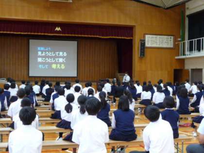 京都府警の方が来られて講演していただきました。スポーツにも将棋にもルールがあります。ルールがあるからこそ、みんなが安全で楽しむことが出来ます。最近のSNSでトラブルに巻き込まれるのも同じこと。スマホは大変便利なものですが、使い方を間違えると犯罪者にもなったり、犯罪に巻き込まれることもあります。1時間の講演でしたが、みんな真剣に聞いていたようです。家に帰って保護者の方とスマホの使い方等について話し合うきっかけになると思います。