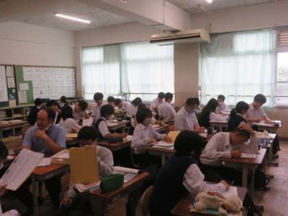 生徒たちは、暑い中ですが、学習に集中して取り組んでいます。