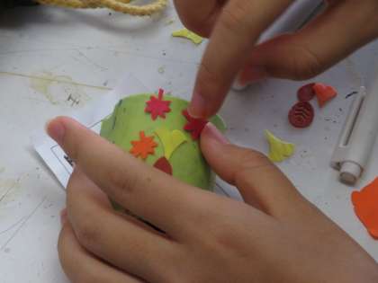 和菓子を粘土で制作し、その自分が作った和菓子をアピールするポスターを作成するという授業です。