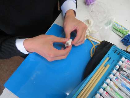 五感を意識しながら、人々に興味を持ってもらえるような物を考え、また興味を持ってもらえるようなアピール方法を考える。将来、社会人になっても、とっても役に立つ内容です。とっても細かな作業をしている人もいました。色使いもステキです。