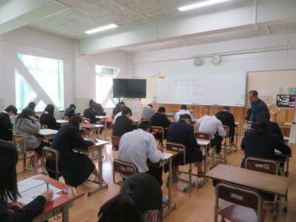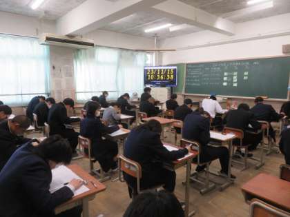 コツコツと鉛筆の音が静まりかえった教室に響きます。ぜひ、しっかり復習に取り組んだ状態で、テストにのぞんでほしいと思います。明日、あさってとテストは続きます。体調にも十分気をつけて、自分に負けずに頑張ってほしいです。