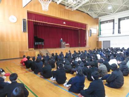 大変寒い中でしたが、みなさん素晴らしい姿勢で話を聞くことができていました。その姿を見ただけで、学校全体として成長しているなぁと感じています。