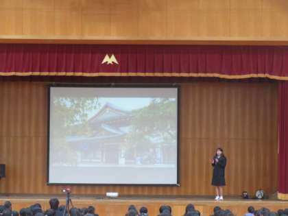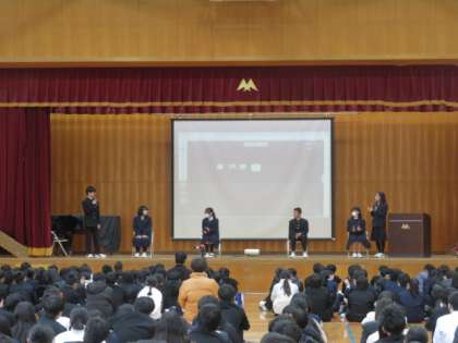 1年生は私の好きなもののすごさ、2年生は20年後の〇〇の働き方を提案するというテーマでした。各クラスの代表者が全校生徒の前で発表します。自分の思いを自分の言葉で発表する経験はなかなかありません。その貴重な経験を通して、未来を切り拓いていく生徒の育成を目指しています。発信する力はとても大切です。仲間の発表を聞く側の姿勢や頑張って発表している仲間の姿を見て周りが刺激を受けることも大切です。この取り組みで、一人ひとりの心がいい意味で揺さぶられているといいなぁと思います。
