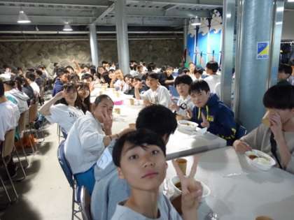 吉野川サービスエリアを出発後、徳島県三好市にあるRiverstation West-westに到着しました。本来でしたら、ラフティングを実施する予定でしたが、大雨と増水のため、中止となりました。ここでは、昼食のカレーを食べています。生憎の天候ですが、すぐ側には、吉野川が流れており、野外でのカレーを美味しく食べました。この後、予定を変更して、ホテルに向かいます。時間に余裕があるので、ホテルでゆっくりと時間を過ごします。