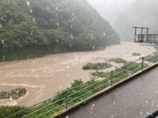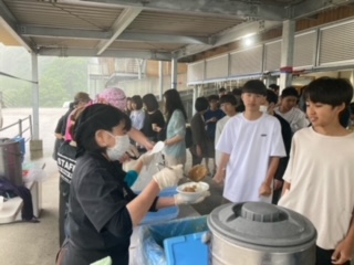 高知に到着しました。増水のためラフティングは中止となりましたが、カレーを美味しくいただきました。