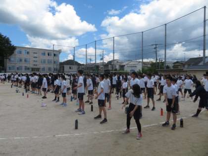 本日、3・4限に体育大会の予行を行いました。団体種目の練習を中心に実施しました。学年をこえて縦割りで実施していますが、みんな声をかけあいながら頑張っていました。