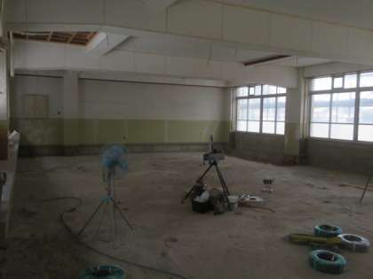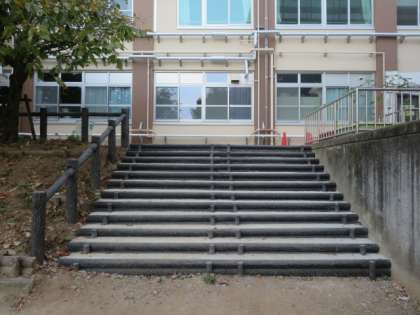 一番上の写真は、5号館です。足場が少しずつとれて、外壁がキレイに見えてきました。真ん中の写真は、バレーコートから5号館へ向かう階段です。以前は半分の幅で、木が覆いかぶさり、とても歩きにくかったのですが、キレイに整備されました。一番下の写真は、現在改修工事中の6号館です。各教室のほとんどの物が取り外されています。