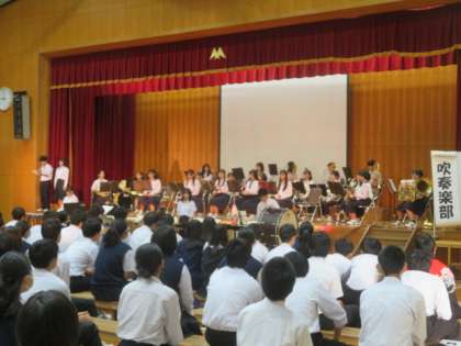 本日、文化祭を実施しています。まずは吹奏楽部の演奏です。昨日の夕方まで、また今朝も少し早くきて準備をし、素晴らしい演奏をしてくれました。