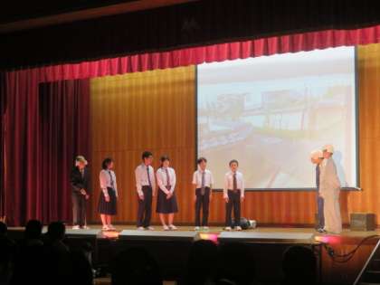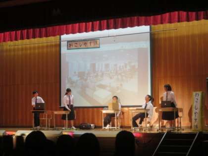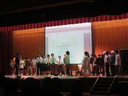 1年生は「右京区 おこしやす課」という劇を発表しました。みんなの力で右京区をより良くしていくという思いを持って、発表に取り組みました。